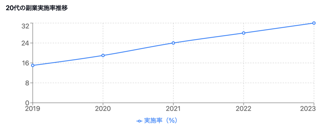 20代の副業実施率、なんと4年で2倍以上に増えているんです!これって、裏を返せば、今参入するのが絶妙のタイミングということ!🎯